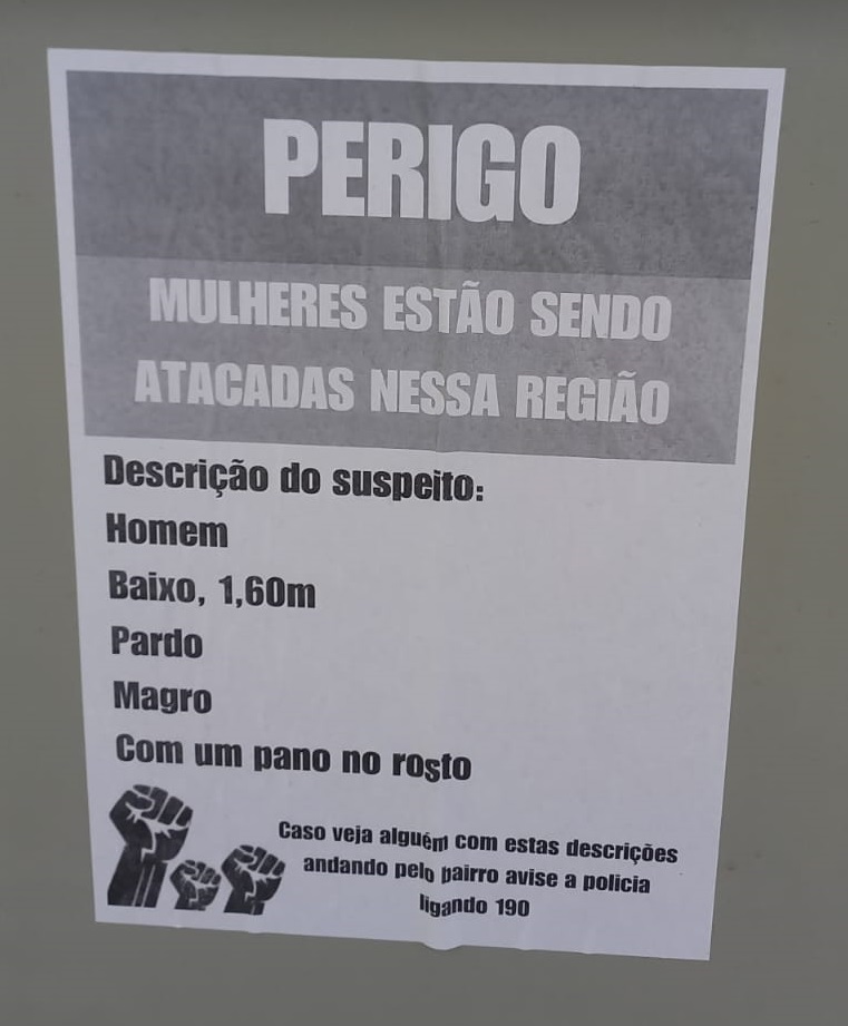 O cartaz é um alerta para todas as mulheres e uma tentativa de identificar o agressor.