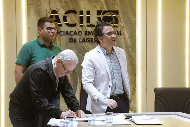 Requerimento para licitação do projeto de duplicação da rodovia BR 282, numa extensão de aproximadamente 2,5km e obra de arte (viaduto), no trecho entre a duplicação atual na ponte ferroviária e a rotatória do Aeroporto, foi assinado na noite de segunda-feira (13), na Associação Empresarial de Lages pelo secretário de Mobilidade Urbana, Gabriel Córdova, e pelo presidente da Acil, Carlos Eduardo de Liz. Referendaram o documento Gênesis Gonsalves, Diretor de Planejamento e Urbanismo da SEPLAM, o arquiteto da Seplam, Roberto Provenzano e os empresários Paulo César da Costa e Roberto Amaral.
