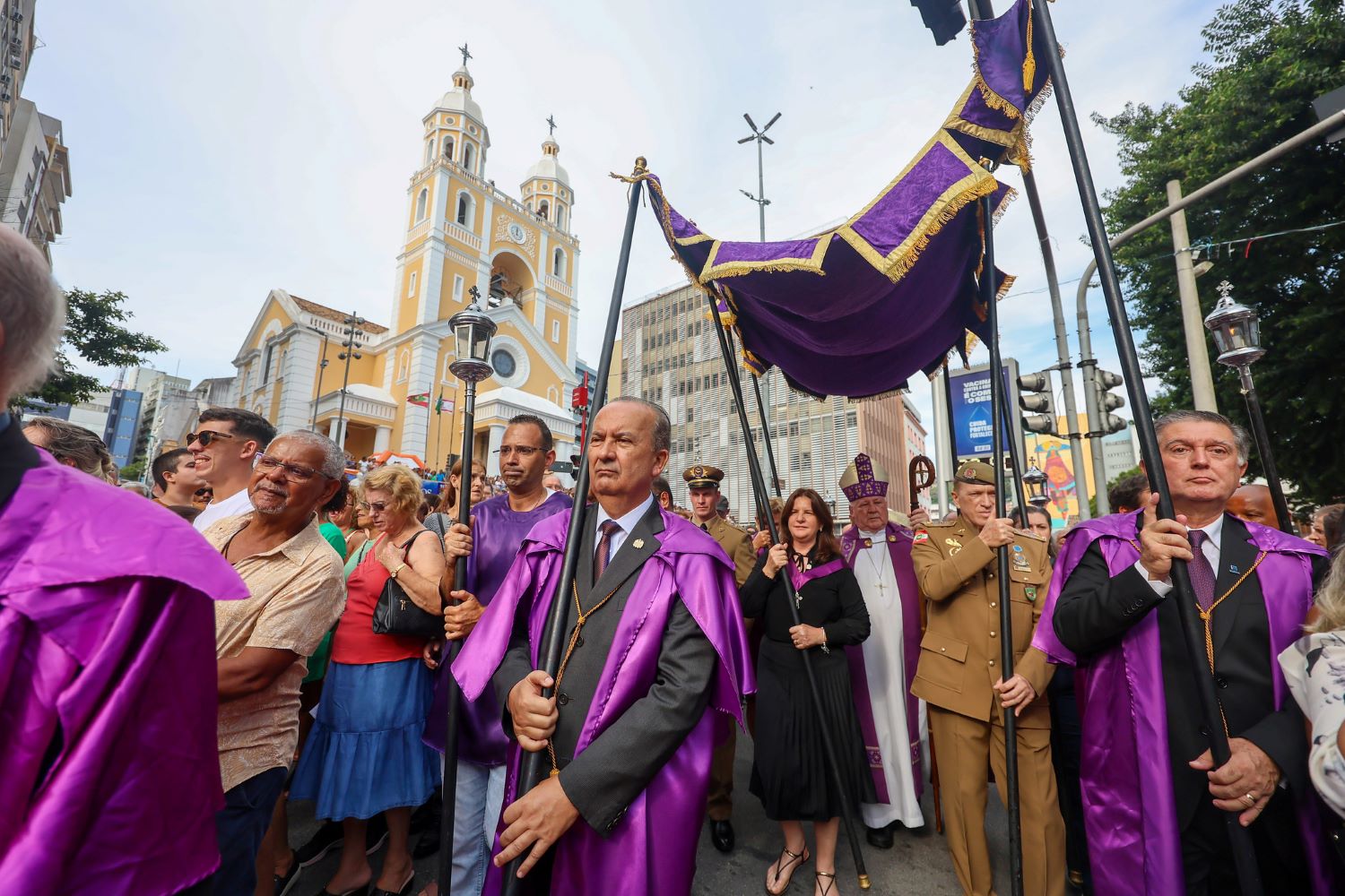 Homem de fé, o governador Jorginho Mello participou de todo o trajeto da procissão e revelou a satisfação de fazer parte de uma tradição de mais de 258 anos em Santa Catarina.