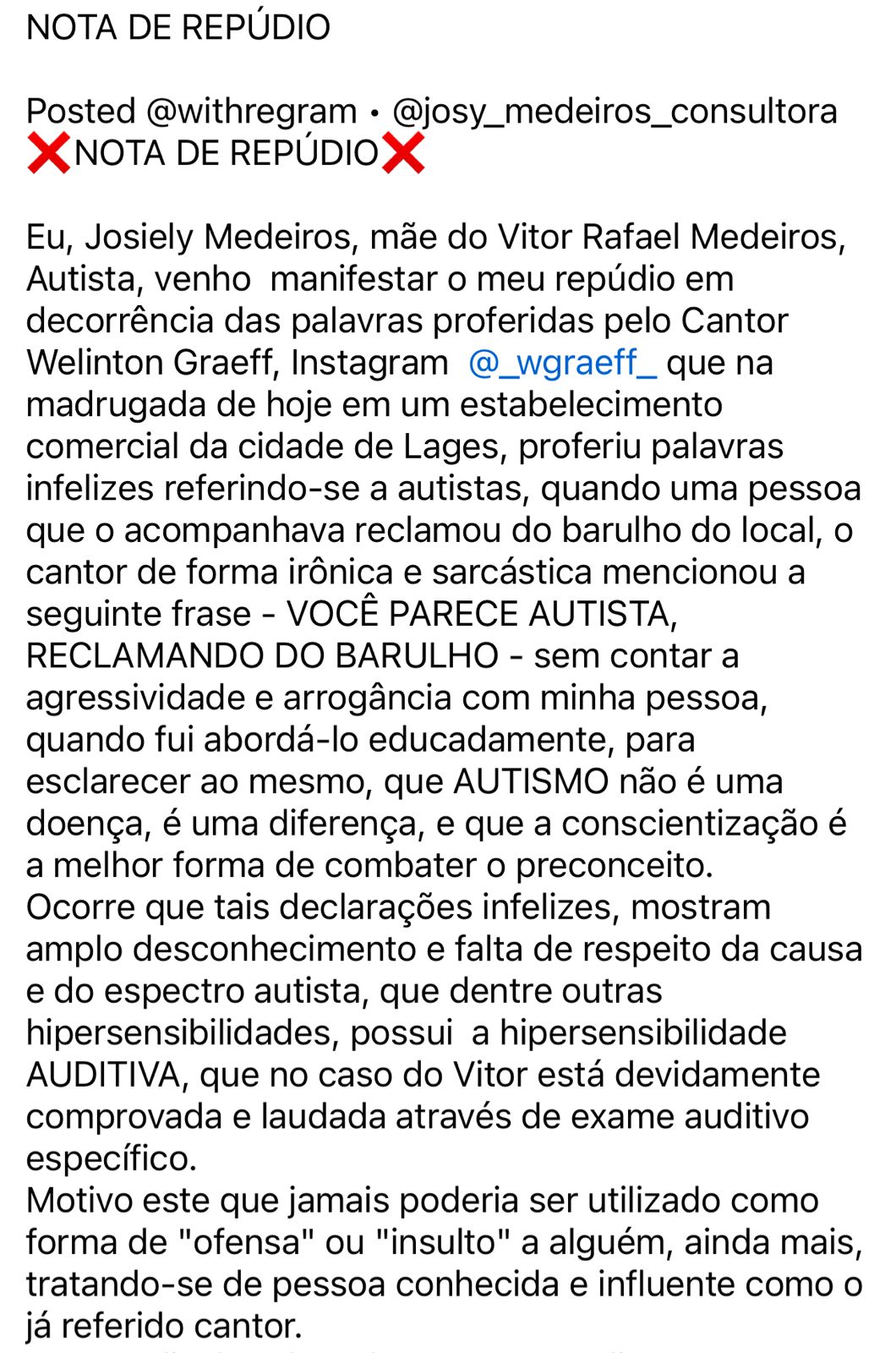 O interessante seria convidar o cantor e tbm os políticos visitarem apae de Lages q sempre precisa de ajuda,ótima oportunidade ao vereador aparecer lá e observar as dificuldades e desafios da instituição