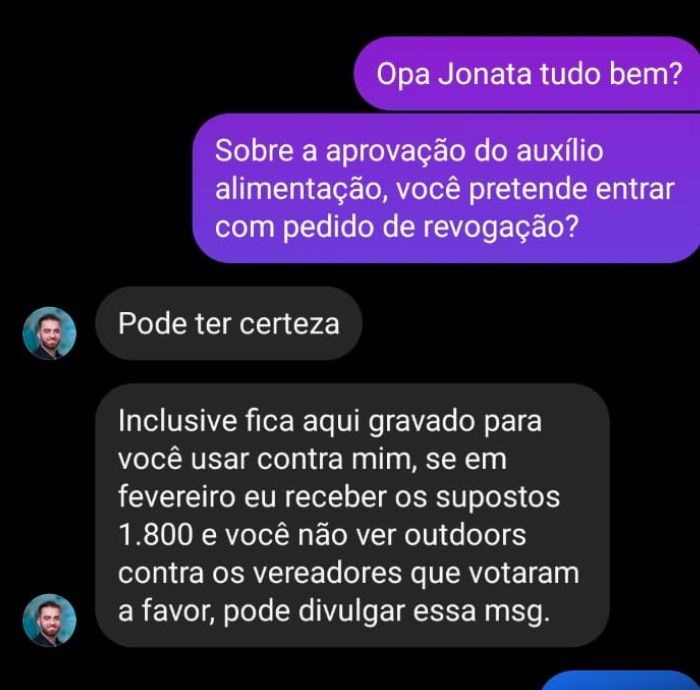 3. O futuro vereador está respondendo sobre o vale alimentação de R$1.800, ou de qquer outro valor. O nosso problema é esse ABSURDO na “calada da noite”!!