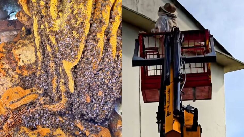 De acordo com informações divulgadas em um vídeo nas redes sociais, a colmeia tinha cerca de 1 metro de comprimento. O enxame, segundo a equipe, tinha entre 80 a 110 mil abelhas.