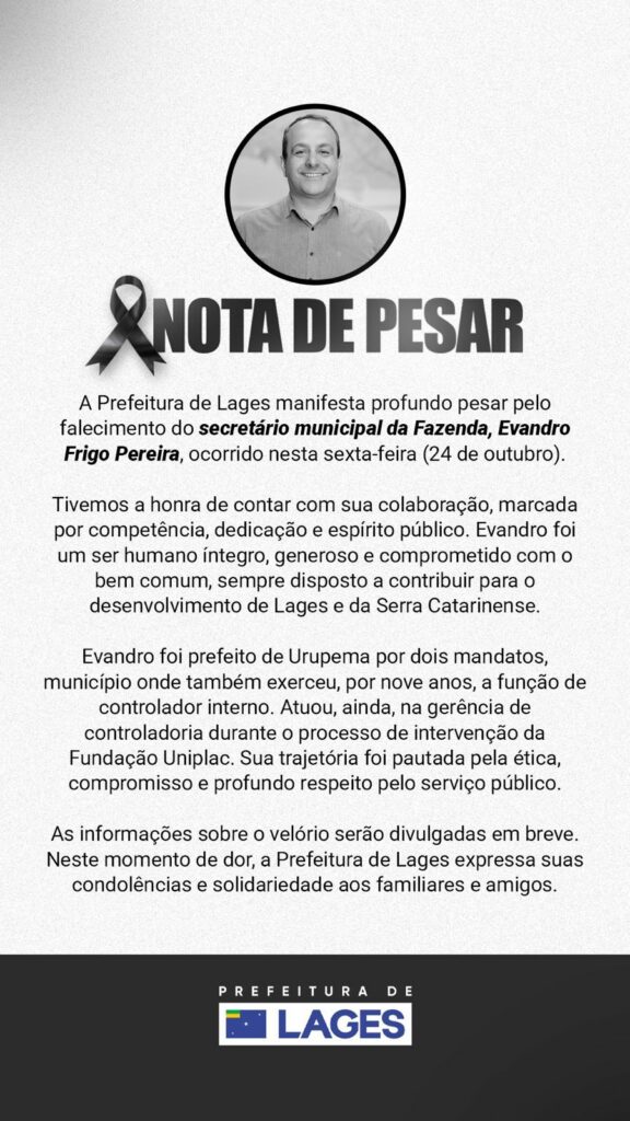 Como o secretário de Finanças, Evandro Frigo Pereira não compareceu nesta manhã de sexta-feira na prefeitura, um funcionário foi ao seu apartamento para ver o que havia acontecido. Ao chegar lá a porta estava fechada e teve de ser arrombada. Ele foi encontrado morto, com um tiro na cabeça e a arma ao lado. A polícia esteve no local para fazer a investigação. Possivelmente a morte ocorreu na noite de quinta-feira, segundo os investigadores. Evandro era natural de Urupema , tinha 47 anos e foi prefeito por dois mandatos. Sua esposa é professora e têm duas filhas.
