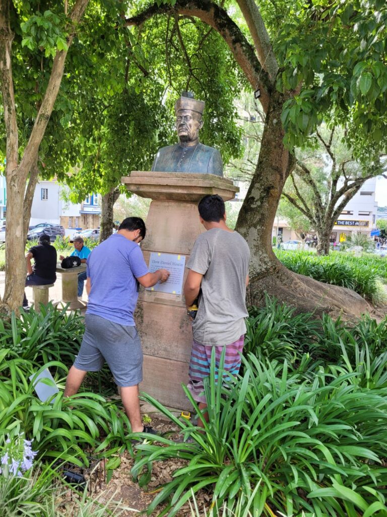 O trabalho foi intenso na quinta-feira (20 de novembro), feriado que celebra o Dia da Consciência Negra, com a “limpeza pesada” dos quatro bustos que homenageiam figuras marcantes para Lages e para o Brasil e que compõem o conjunto histórico da praça. São eles: Getúlio Vargas, Dom Daniel Hostin, César Sartori e Walmor Argemiro Ribeiro Branco.