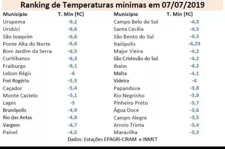 Temperaturas mínimas no estado