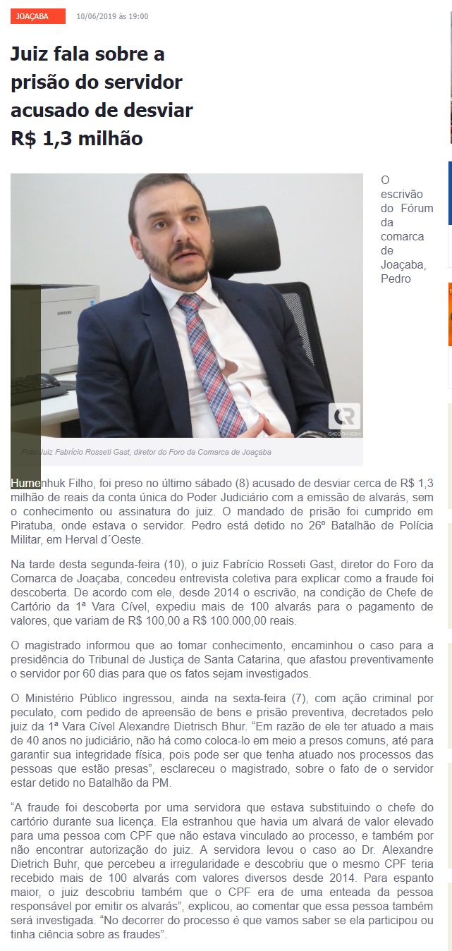 Caso ocorrido em Joaçaba acionou o alerta que levou aos desvios em Lages 16 de julho de 2019 Por Olivete Salmória Este caso veio a público no dia 8 e ocorreu da mesma forma com que foi registrado o desvio em Lages.