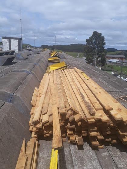 As obras já iniciaram, tendo como objetivo a melhora significativa das instalações da escola. Foram retirados todos os toldos metálicos existentes nas bordas da edificação. Será feita a cobertura de fibrocimento 6,0mm, com fixação e vedação, bem como cumeeira em fibrocimento 6,0mm.
