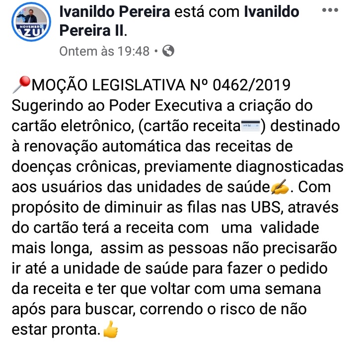 Atualmente, sabemos da dificuldade em que o cidadão tem em agendar uma consulta nas unidades de saúde da cidade. Com isso, dificultado o acesso do paciente ao medicamento, justamente pela falta da renovação da receita de seus medicamentos de uso contínuo, ficando o mesmo sem o remédio por determinado tempo.