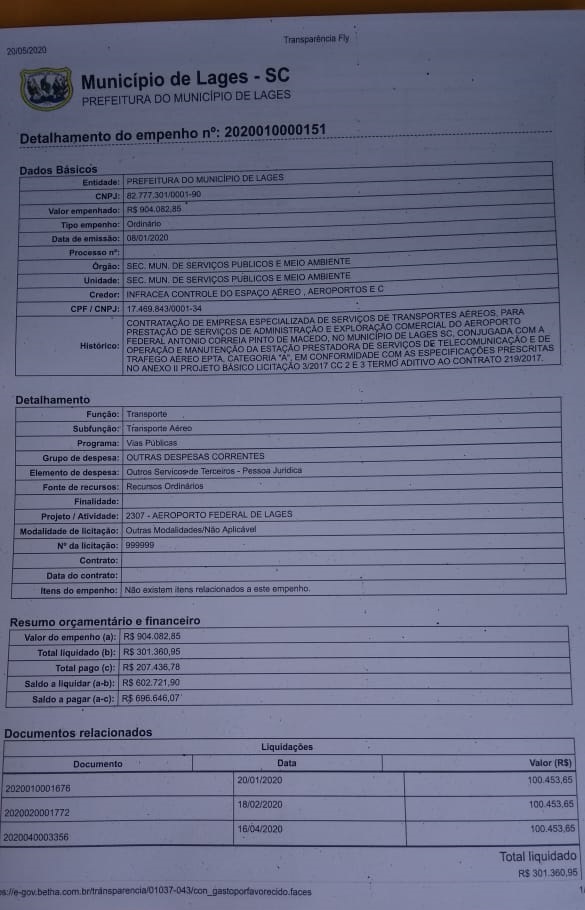 A prefeitura tem contrato com a empresa Infracea, que está administrando o aeroporto local desde 2017. Paga cerca de R$ 100 mil mensal para este serviço. Contudo, hoje já não temos nenhum voo comercial. A empresa Azul cancelou todos e só retornará entre agosto ou setembro, dependendo de como estará a situação até lá. Por ano, a prefeitura gasta cerca de R$ 1 milhão, só com este contrato.