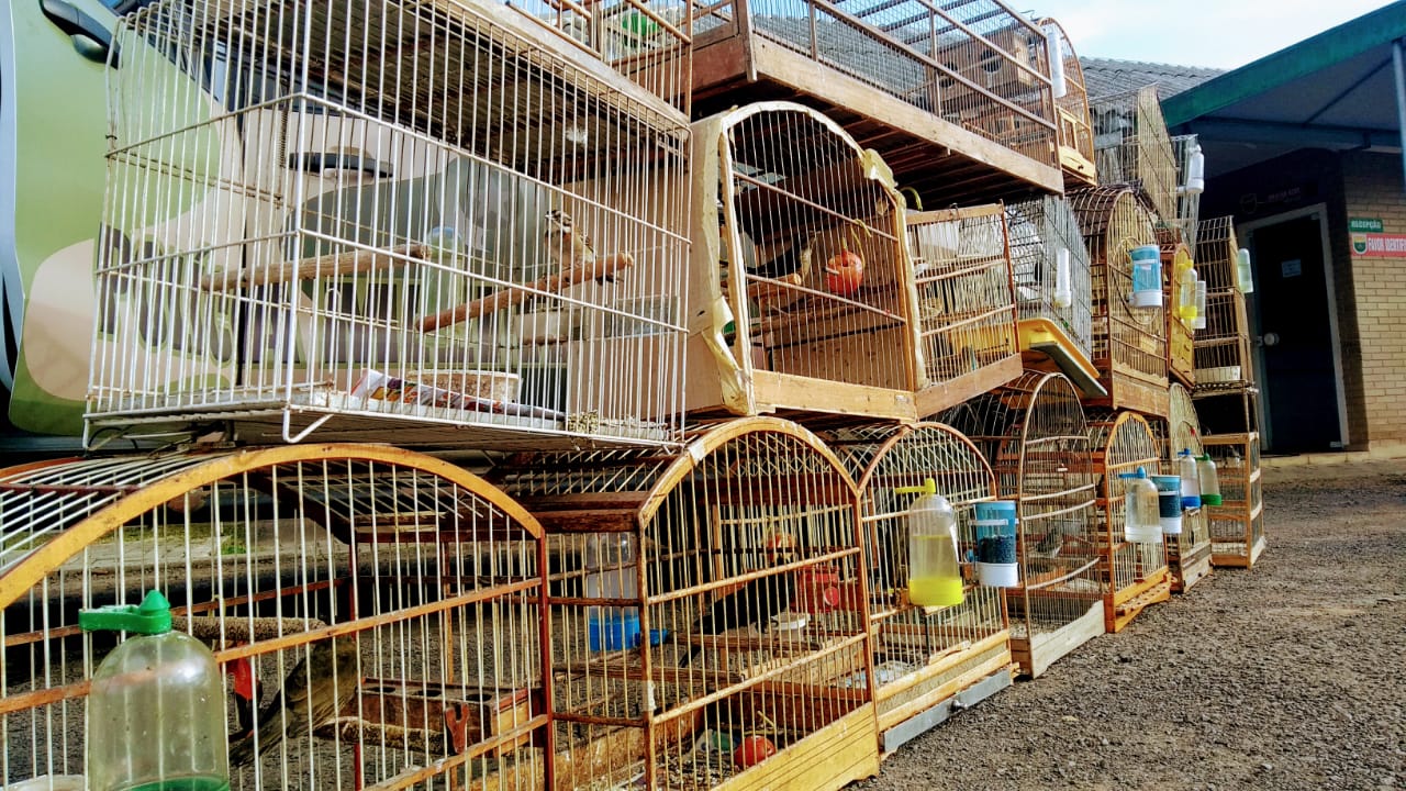 Ambiental flagra pássaros nativos em cativeiro