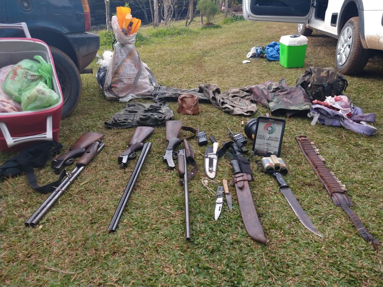 O 2° Batalhão de Polícia Militar Ambiental, unidade que integra o Comando de Policiamento Ambiental (CPMA), através do 3° Grupo de Polícia Militar Ambiental em Curitibanos, prendeu nesta tarde (04) quatro indivíduo por porte ilegal de arma de fogo munições e Caça de Animais Silvestres.