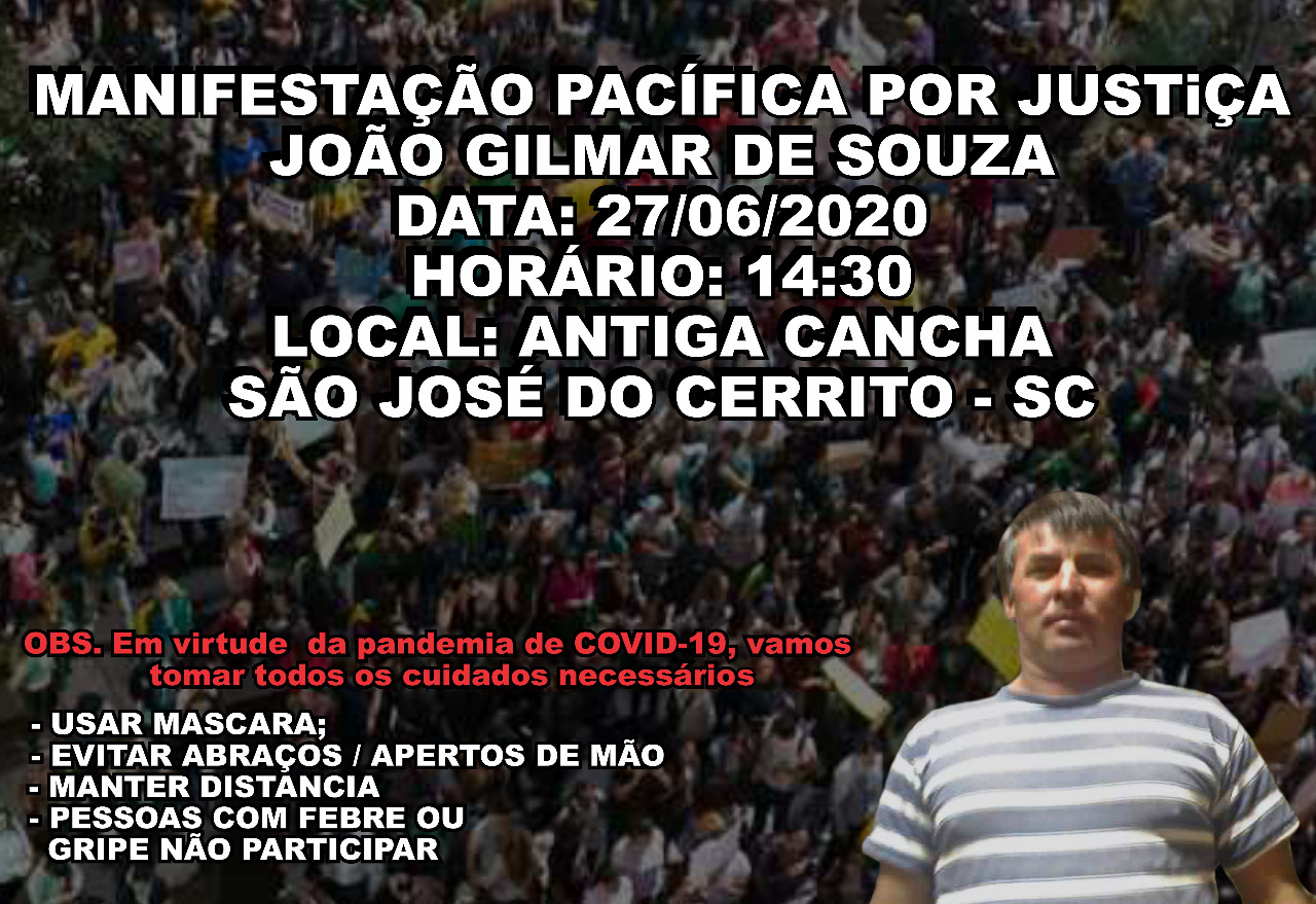 Familiares, amigos e conhecidos de João Gilmar de Souza estão se preparando para realizar, sábado (27) à tarde, uma manifestação na antiga cancha de São José do Cerrito, pedindo por esclarecimento a respeito da morte de João Gilmar, no último dia 15, quando recebeu cinco tiros da polícia. “Foi morto como se fosse um bandido”, dizem alguns conhecidos. É isso que está indignando a comunidade.