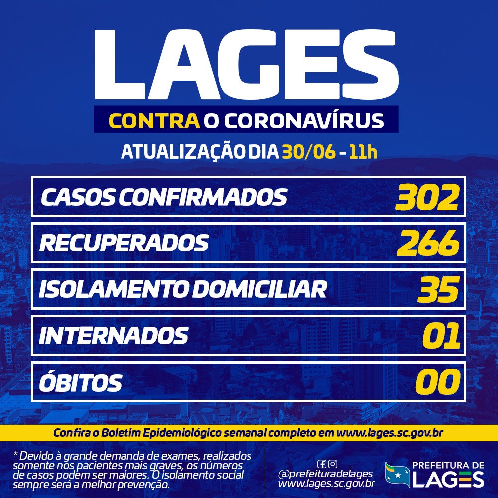 Situação do coronavírus em Lages nesta terça-feira