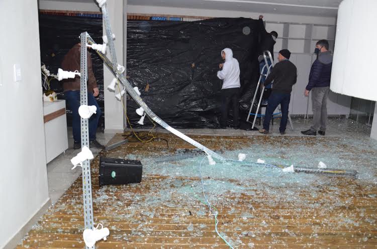 O ciclone ocorrido nesta terça-feira ocasionou a falta de energia elétrica em diversos pontos da cidade, incluindo a Câmara de Vereadores, que ficou com os telefones e internet sem funcionamento. Além disso, a biblioteca da Casa teve parte do telhado arrancado e vidros destruídos durante a tempestade.