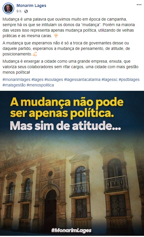 Não conheço pessoalmente o monarim, mas parece que faz as coisado com zelo e não parece ser politiqueiro de carreira