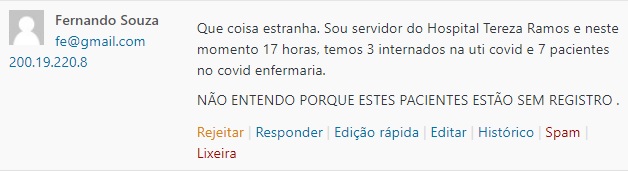 Confesso que fiquei preocupada e fui atrás de informações junto ao secretário da Saúde, Claiton Camargo que me passou esta relação de ocupação dos leitos de UTI: