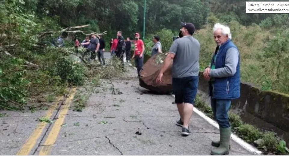 Olha só o tamanho da pedra que rolou sobre a pista na Serra do Rio do Rastro. Isso foi na altura do KM 408 da SC 390, por volta das 16h deste domingo (16).