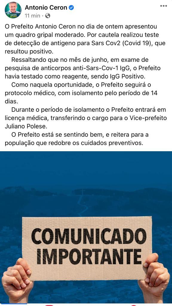 9 comentários em “Ceron fez o teste apenas por cautela e deu positivo”