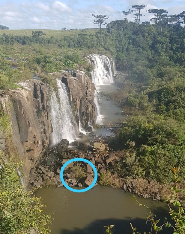 Histórico: Esta ocorrência teve início por volta das 01h30min quando a Central de Operações da Polícia Militar entrou em contato com a Central de Operações do Corpo de Bombeiros Militar (193) e informou ter recebido a informação, via 190, que havia sido visualizado um corpo de uma pessoa, sem vida, sobre as pedras abaixo da cachoeira localizada depois da usina do Salto do Caveiras. De pronto, uma guarnição foi acionada, mas, por ser a noite, não localizou nenhum vestígio da vítima na referida cachoeira. Logo no início da manhã, com a luz do dia, após conseguir contato com o solicitante, foi deslocada uma segunda equipe de busca que, ao chegar no local, localizou o corpo, com ausência de sinais vitais, rigidez cadavérica e apresentando alguns ferimentos. A vítima é um masculino, de aparentemente 30 anos de idade, sem nenhum pertence pessoal ou documento para sua identificação. Foi realizado, então, imediatamente, o acionamento do Instituto Geral de Perícias (IGP) e da Polícia Civil. O local onde a vítima foi localizada é de difícil acesso, sendo necessário enviar mais uma equipe de reforço para a remoção do corpo, também com o auxílio do Perito do IGP. A guarnição da Polícia Militar presente no local acionou o apoio da aeronave Águia 04, que finalizou a retirada até um terreno nas proximidades, onde o IGP já aguardava. A operação para remoção do corpo estendeu-se até as 11h00min.