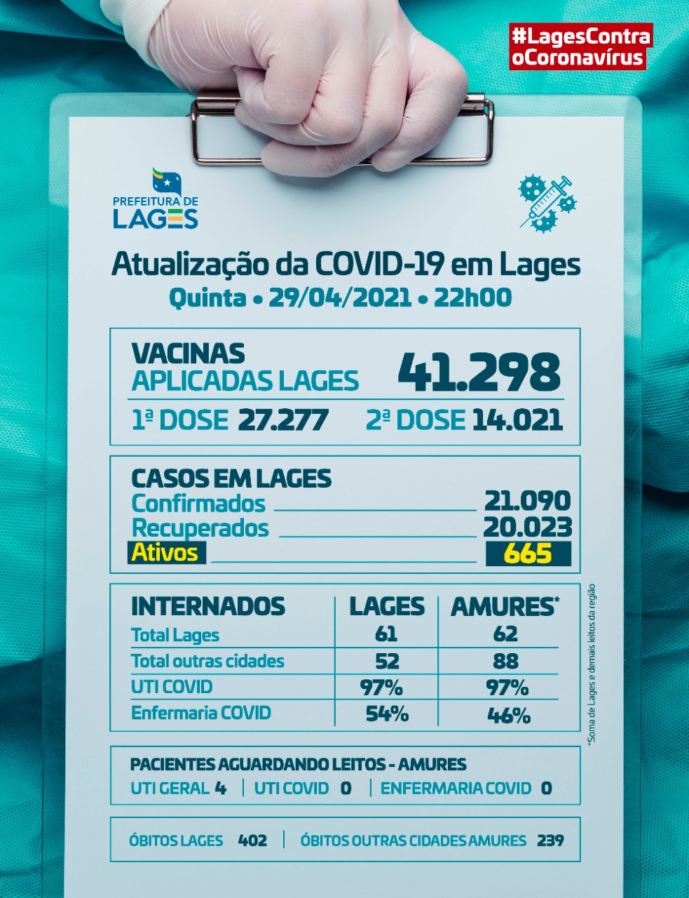 Em Lages com 401 mortos pela COVID, a taxa de mortalidade comparativamente á sua população (157.348 (IBGE 2020)) chega a 0,25%, enquanto no Brasil ela atinge 0,19%… ou seja a mortalidade em Lages é 31,58% maior. …