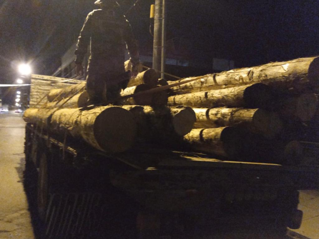 Durante rondas na estrada geral da Localidade de Despraiado, a guarnição PMA abordou um caminhão da marca Ford transportando toras de árvores nativa da espécie conhecida popularmente por Pinheiro Brasileiro (Araucária), sem a devida autorização do órgão competente.