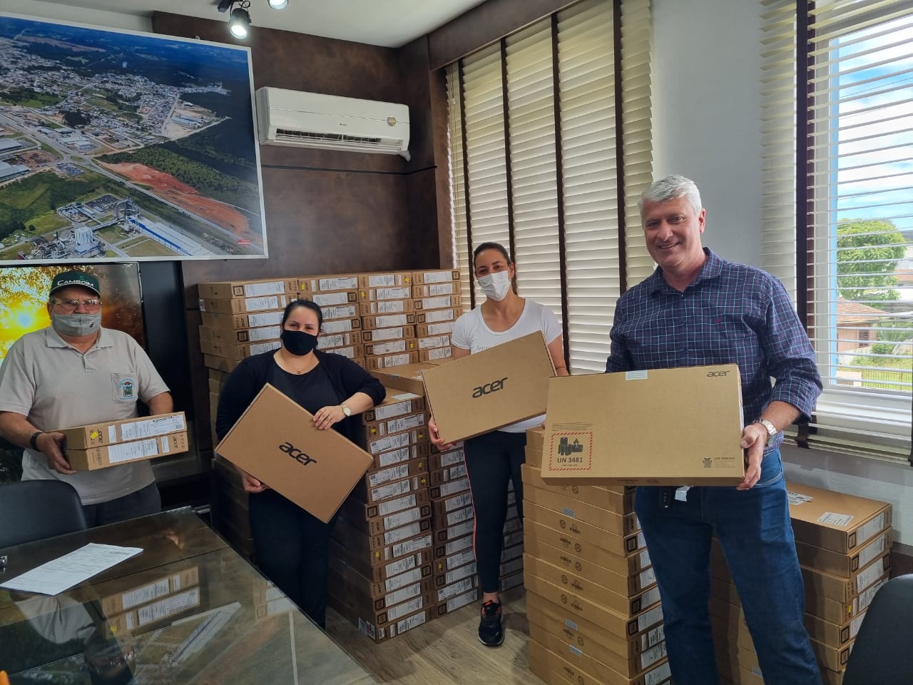 O Prefeito de Otacílio Costa, Fabiano Baldessar recebeu a primeira remessa dos mais de 300 notebooks que em breve serão distribuídos para os professores da rede municipal de ensino.