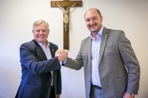 O 1º vice-presidente da Assembleia Legislativa, deputado Nilso Berlanda (PL), assumiu na tarde desta sexta-feira (5) a Presidência do Parlamento estadual, em substituição a Mauro de Nadal (MDB), que assumirá temporariamente a chefia do Poder Executivo estadual. A transmissão do cargo ocorreu no gabinete da Presidência da Alesc e foi acompanhada por familiares e assessores dos dois parlamentares. O deputado Coronel Mocellin (PSL) também participou do ato.