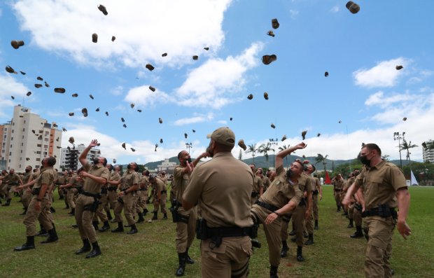 Mais 531 novos policiais militares passam a reforçar a segurança em Santa Catarina. A solenidade de formatura do curso de Formação de Soldados da Polícia Militar foi realizada na manhã desta quinta-feira, 16, em Florianópolis, com a presença do governador Carlos Moisés. Com a nova turma, o Governo do Estado atinge a marca de 1.100 novos policiais, o que representa uma renovação de 10% do efetivo da PM em dois anos.