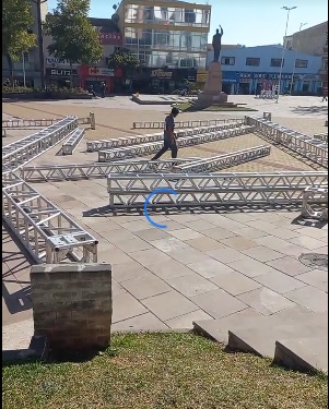 Montagem da área coberta do Recanto 24 de maio de 2022 Por Olivete Salmória Começa a montagem do Recanto do Pinhão, no calçadão da Praça João Costa. Haverá uma área coberta a exemplo do que foi feita no recanto montado na praça do terminal. Só que desta vez será bem maior, já que o que não falta no calçadão, hoje, é espaço.