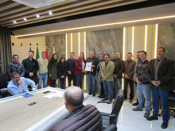 Integrantes do Núcleo de Engenharia e Arquitetura (NEA) realizaram, durante a reunião da Associação Empresarial de Lages, a entrega oficial do projeto para revitalização da Praça Paulo VI, localizada ao lado da Igreja do Rosário, para o Prefeito de Lages, Antonio Ceron.