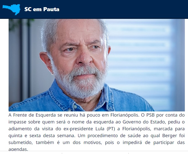 2. Se o pessoal de centro esquerda tiver cabeça, tem de colocar o Dário de candidato, pois esse é o que pode trazer parte do centro para apoiar Lula. O centro de esquerda com Décio Lima não faz 10% dos votos, e atrapalha em muito a eleição do Lula em Santa Catarina. O Lula tem chances de fazer até uma boa votação, mas não com o PT de cabeça de chapa em SC.