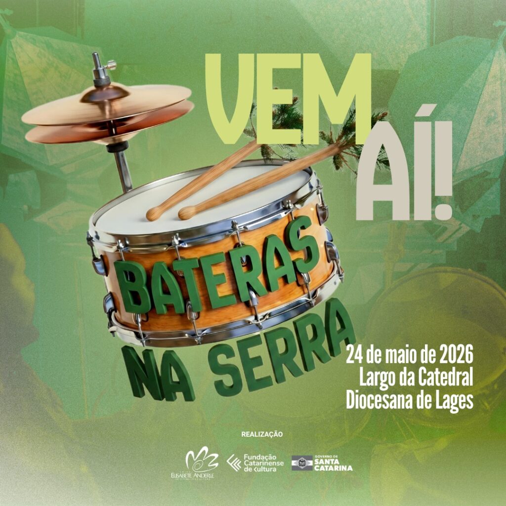 Uma apresentação diferente do comum promete chamar a atenção do público em maio. No dia 24, o projeto Bateras na Serra transforma o Largo da Catedral Diocesana de Lages em um grande palco ao ar livre, reunindo bateristas e percussionistas em uma performance coletiva.