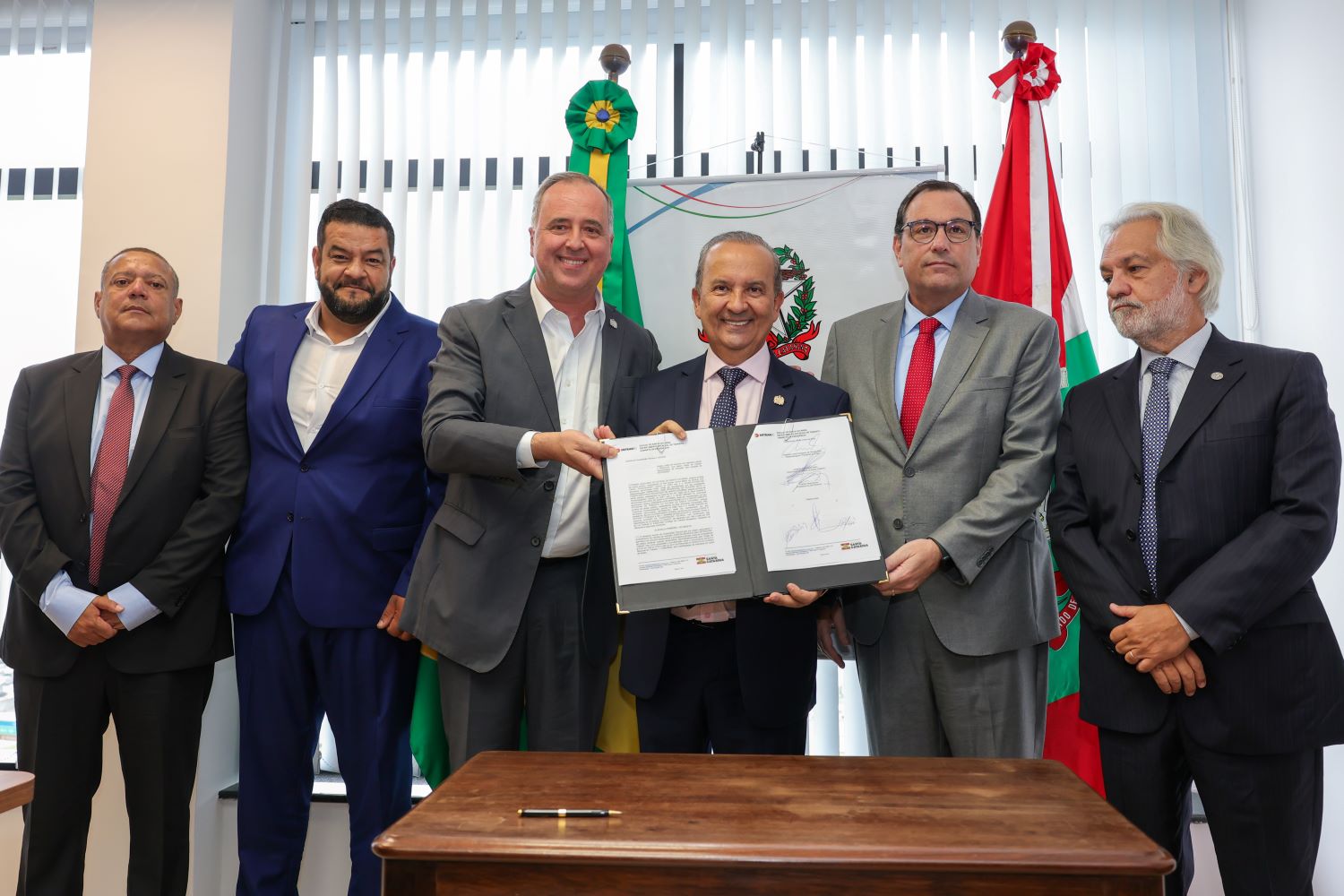O governador Jorginho Mello assinou nesta sexta-feira, 8, acordo de cooperação técnica com o Tribunal Justiça para agilizar a retirada da restrição judicial (Renajud), imposta aos veículos apreendidos relacionados a processos judiciais de competência da Justiça estadual. Também participou do ato de assinatura presidente do Detran/SC, Kennedy Nunes, e o presidente do Tribunal de Justiça de Santa Catarina, Francisco de Oliveira Neto.