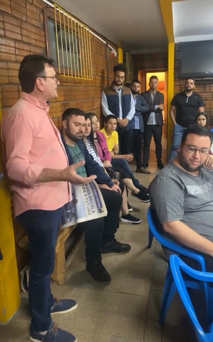 A juventudedo MDB/Lages, que tem no comando João Paulo Sá, reuniu na noite desta terça-feira (24), cerca de 40 jovens militantes do MDB e simpatizantes. A conversa girou em torno do momento político tendo como destaque o futuro de Lages. Estiveram presentes o presidente do MDB, Pedro freitas, e o convidado da noite, o ex-prefeito Elizeu Mattos, que respondeu perguntas feitas pelos presentes relacionadas ao trabalho desenvolvido quando prefeito da cidade.