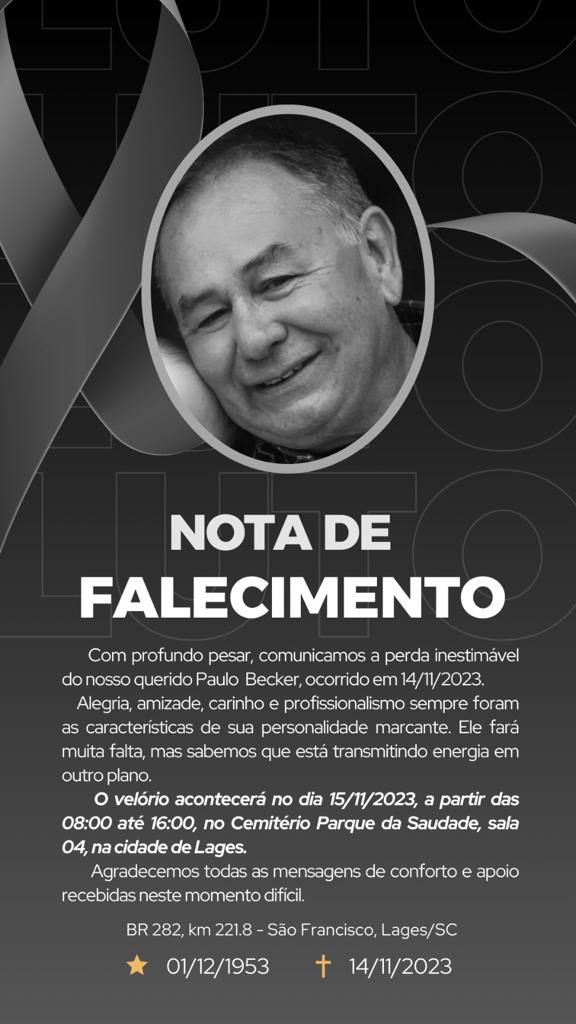 Informamos que o Governador do Estado, Jorginho Mello, decretou luto oficial em todo o Estado, pelo período de 07 (sete) dias, a contar do dia 14 de novembro de 2023, em sinal de pesar pelo falecimento do ex-Governador do Estado de Santa Catarina, Colombo Machado Salles, aos 97 anos, ocorrido hoje em Florianópolis (SC).