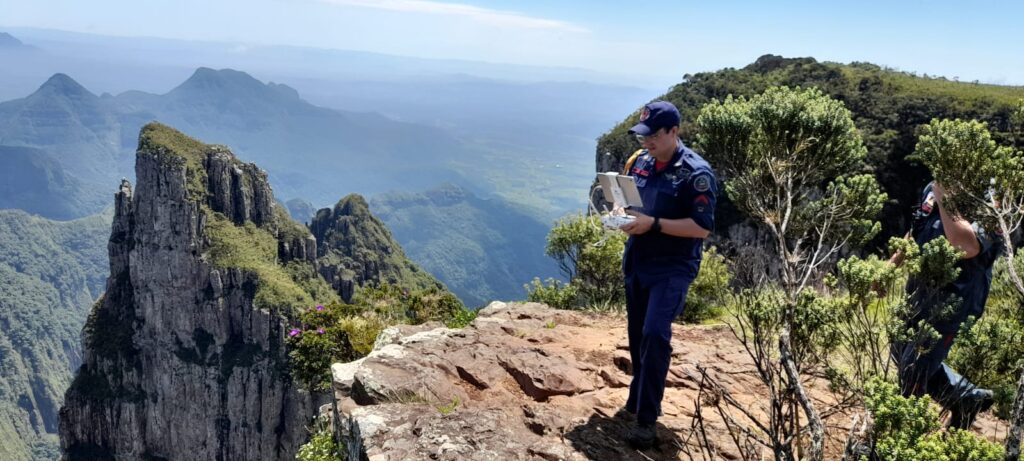 As Guarnições da AR-130, AR-182 e ATM 197 deslocaram de suas OBM’s de origem até o ponto turístico do Cânion do Funil localizado entre os municípios de Bom Jardim da Serra e Lauro Muller, afim de dar sequencia nas busca do masculino maior desaparecido no dia 08/01/2024. Ao chegar, já estavam no local, a familiar e amigos da vitima, o proprietário do terreno e uma dupla de montanhistas profissionais. Foram reforçada informações com as testemunhas e posteriormente iniciadas as buscas com o uso de RPA, devidamente com voo autorizado conforme protocolo 45B83F1F. As buscas se deram por aproximadamente 1h, focando encontrar vestígios nos paredões e platôs nas proximidades do ultimo ponto visto, porém nada foi localizado nessas áreas. Logo após chegou ao local, a aeronave Águia 04 em apoio, o qual sobre voo no interior do cânion chegando até as proximidades da base dos paredões na região do ultimo ponto visto, obtendo sucesso ao localizar a vitima já em óbito, cerca de 50m afastado da linha do paredão e aproximadamente 160m abaixo do ponto alto cânion e local onde o masculino foi visto pela ultima vez. Após localização, a aeronave voltou a parte alta, deixou alguns equipamentos, afim de minimizar o peso e retornou para içamento do corpo, no pairado deixou o tripulante junto ao corpo afim de acondicionar em maca tipo envelope e subiu para realização de abastecimento. Quando retornam, devido a mudança abrupta das condições climáticas (neblina densa), já não haviam condições de visibilidade para retorno ao local da vítima e recuperação do cadáver, tendo de abortar a missão. Devido as extrema dificuldade de acessão do tripulante e da vitima por sistemas de redução de força, pela borda do paredão, os 2 (dois) montanhistas devidamente autorizados pela GU BM, e pelo fato de grande conhecimento técnico e da região do evento, desceram com o uso de cordas, por uma trilha de cerca de 160m de rapel e alguns metros de caminhada de encontro ao tripulante PM, afim de auxiliá-lo no retorno até o topo, deixando o corpo, já em maca e em saco cadavérico, para ser recuperado pelas equipes no dia seguinte e com melhores condições climáticas, minimizando assim os riscos que envolvem esta operação.