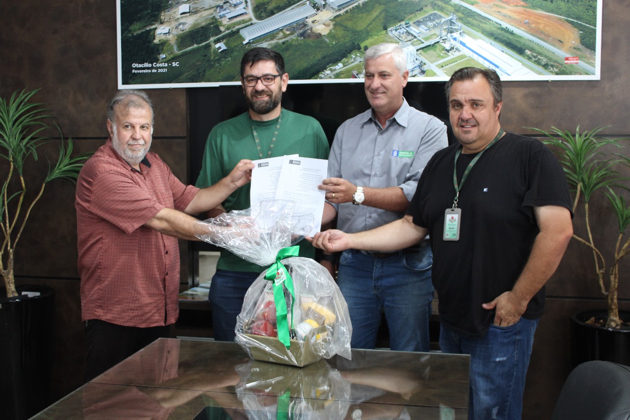 Renovação do contrato entre a Prefeitura de Otacílio Costa e Governo do Estado, através da Epagri. Esse foi o objetivo da reunião realizada na tarde desta terça-feira, 9, no gabinete do executivo. Estiveram presentes o prefeito Fabiano Baldessar de Souza e o vereador Luiz Carlos Oliveira, representando o governo municipal, e o engenheiro agronômo, Murilo Pereira da Silva Nunes, e James Rodrigo Smaniotto, Coordenador de ATER, representantes da Epagri.