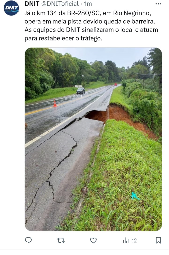 TRANSITO TOTALMENTE INTERDITADO ENTRE URUBICI E SÃO JOAQUIM