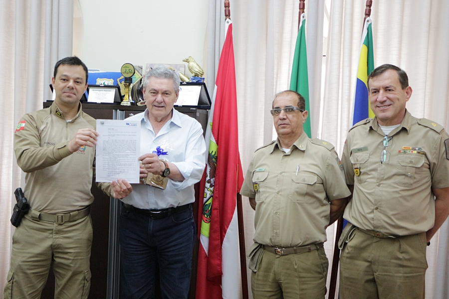 O prefeito Antonio Ceron assinou, na manhã desta quarta-feira (1°), documento referente à doação ao Estado de Santa Catarina de terreno localizado no bairro Morro do Posto, na rua Professor Simplício, anexo ao Colégio Policial Militar Feliciano Nunes Pires. A doação tem por finalidade a ampliação da área que recepcionará novas construções da unidade escolar.