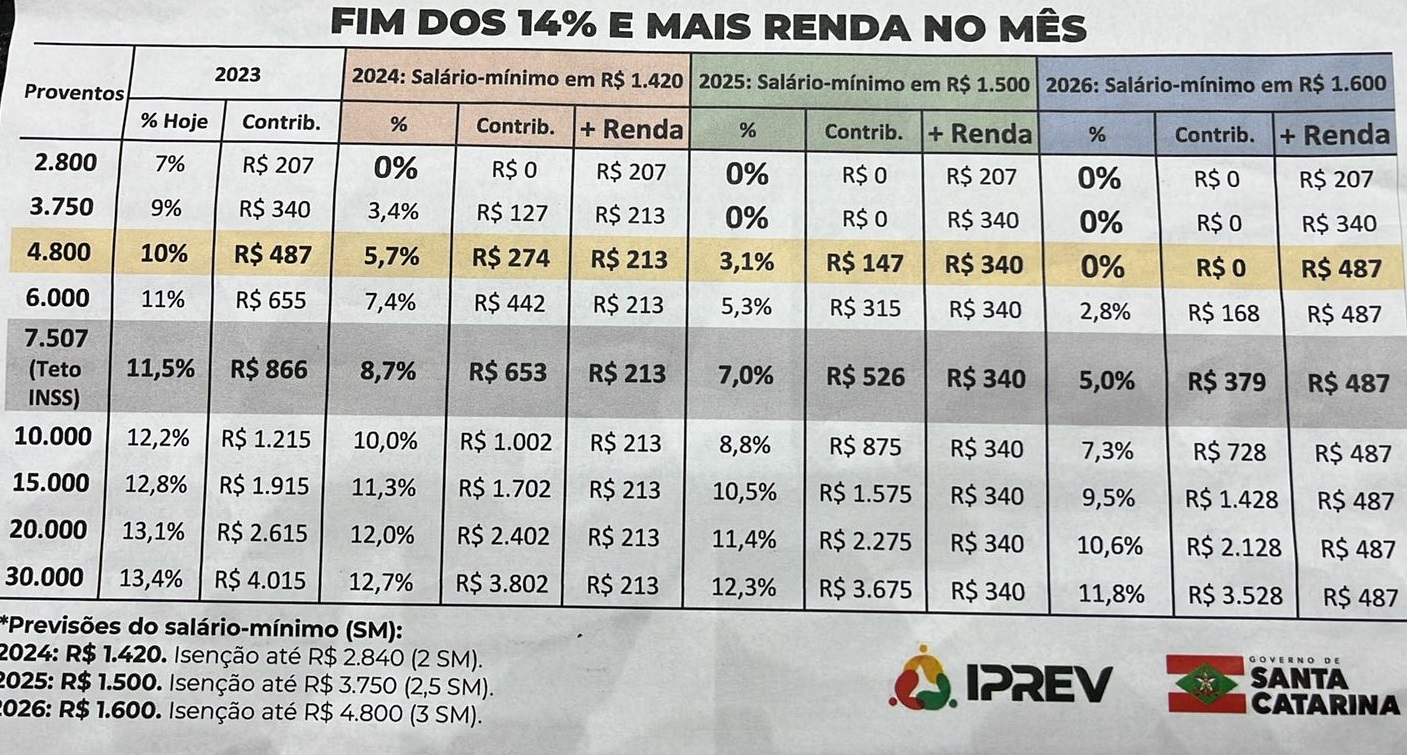 “É um gesto do governador para reduzir e terminar com os 14%, porque acredito que pessoas que estão em casa ganhando R$ 3 mil, R$ 4 mil não merecem que seja descontado 14%”, disse na tribuna antes da votação o deputado estadual Edilson Massocco, líder do governo na Alesc.