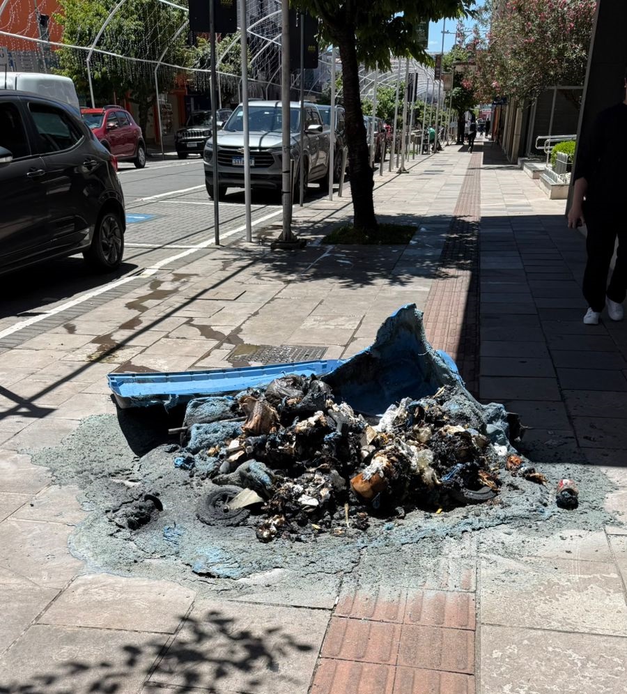 Uma bituca acabou causando incêndio neste contentor que estava justamente na rua Nereu Ramos, onde fui instalado o túnel de luzes.