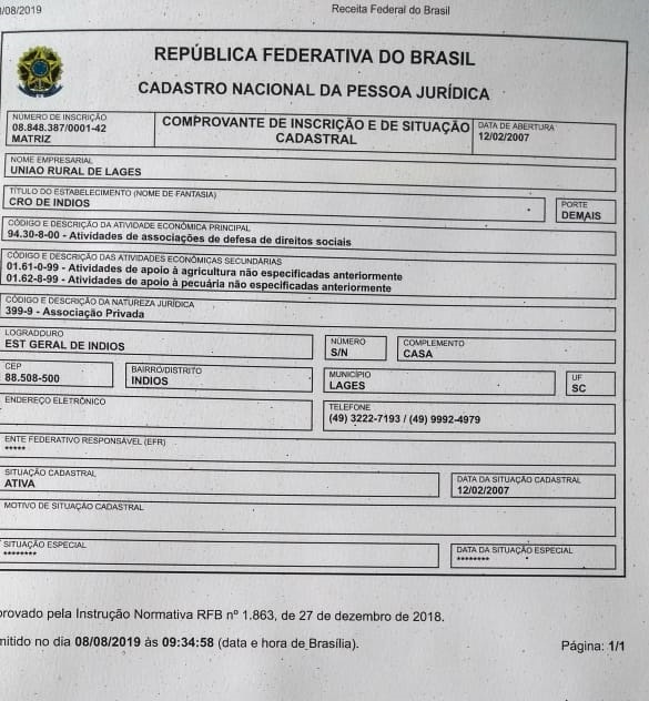 A Unir usa CNPJ da CRO de Índios aberta em 12/02/2007.