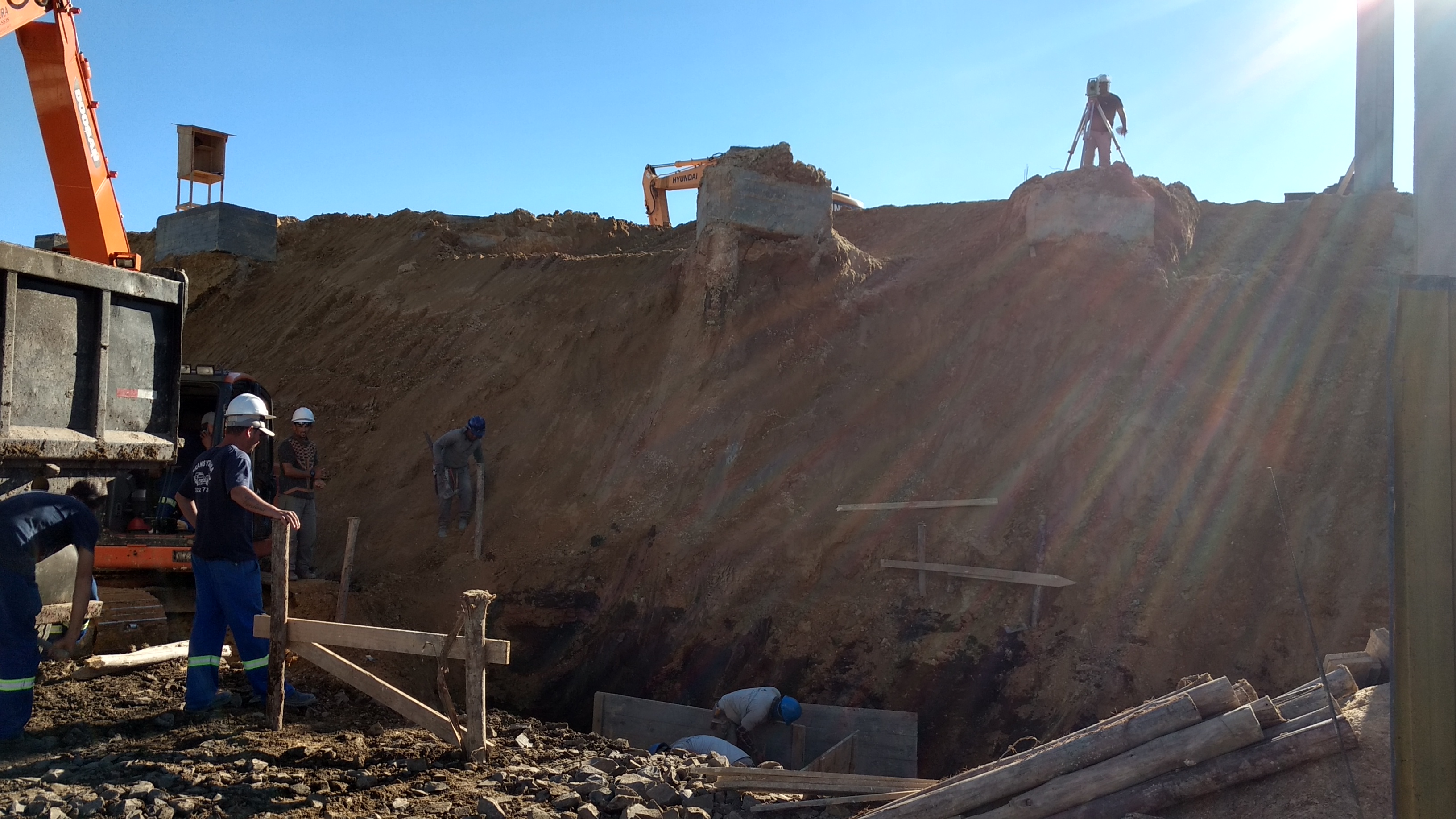 2º Quando iniciou a terraplenagem se descobriu um, veio de água que exigiu alterações em sua base de sustentação.