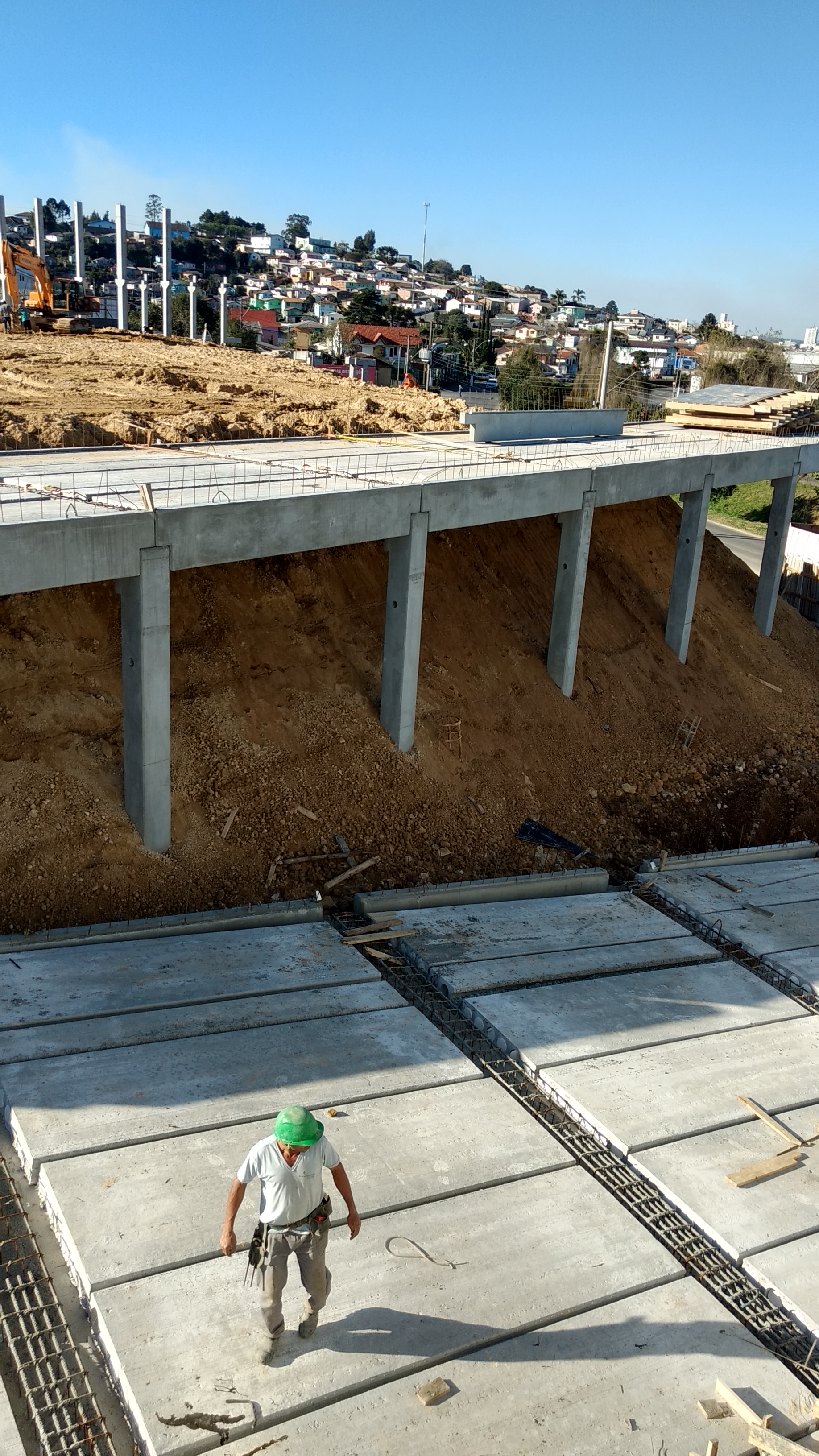 Agora com o terreno já pronto para receber a obra, o trabalho se concentra nas rampas de acesso.