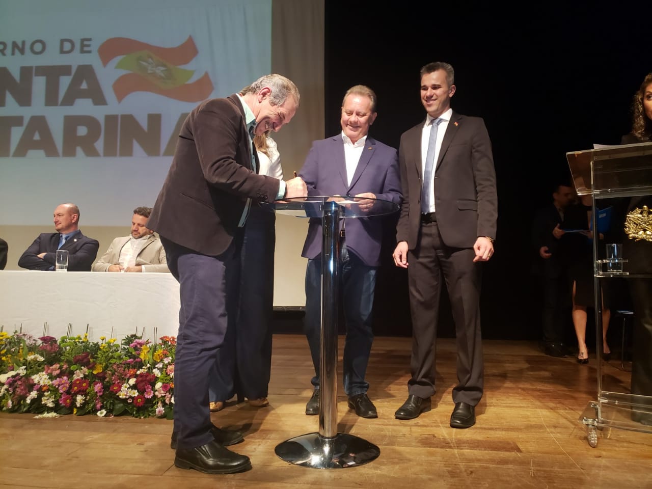 Além do coordenador regional, Airton Amaral, lá estava também Ronaldo Cordeiro, para prestigiar o novo delegado Fabiano Schmitt, pois afinal a indicação foi do diretório local, cujo pedido foi feito diretamente a vice-governadora Daniela Reinehr.