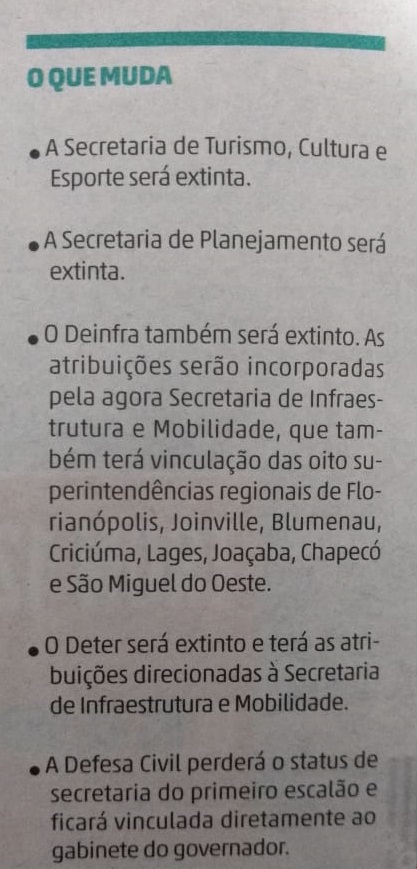 A redação final traz alterações construídas na base do diálogo com os parlamentares, mas mantém o objetivo fundamental da proposta: fazer um governo mais moderno e transparente, que entregue serviços com mais qualidade para os catarinenses.