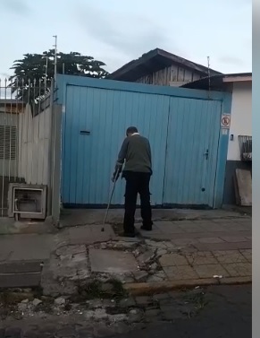 Vídeo que circula nas redes sociais mostra um idoso com dificuldades para atravessar a calçada em função de falhas na pavimentação. O poder público não podia permitir que os proprietários dos imóveis com passeios em tal estado, não tomem providências. Esta é uma questão de mobilidade urbana e também de respeito aos idosos. Uma vergonha!