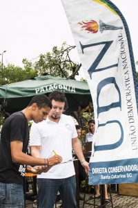 O movimento pela recriação da União Democrática Nacional (UDN) esteve no domingo (28) à tarde no trapiche da Beira-mar Norte para coletar assinaturas. Os simpatizantes participaram da iniciativa carregando uma flag com o tradicional símbolo do partido. O objetivo é atingir as 700 assinaturas que faltam em Santa Catarina para cumprir a regra de homologação do partido no TRE/SC e criar o diretório da Capital.