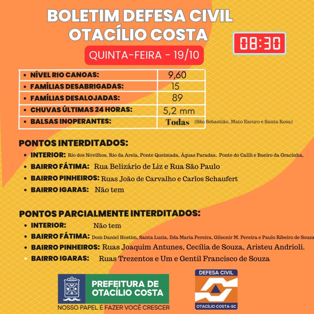 Rio Canoas ainda está 9 metros acima do nível