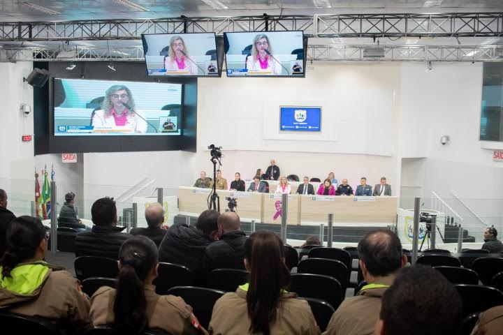 Lages é considerada a 4ª cidade, dentre as que tem mais de 100 mil habitantes em Santa Catarina, segundo análise dos dados estatísticos. Houve uma queda significativa nas taxas de criminalidade, e essa tendência positiva demonstra a eficácia da atuação das forças de segurança e do trabalho conjunto dos envolvidos.  Por isso, a vereadora Suzana Duarte solicitou e aconteceu nesta quinta-feira, uma sessão especial em reconhecimento pelos resultados do trabalho da polícia.